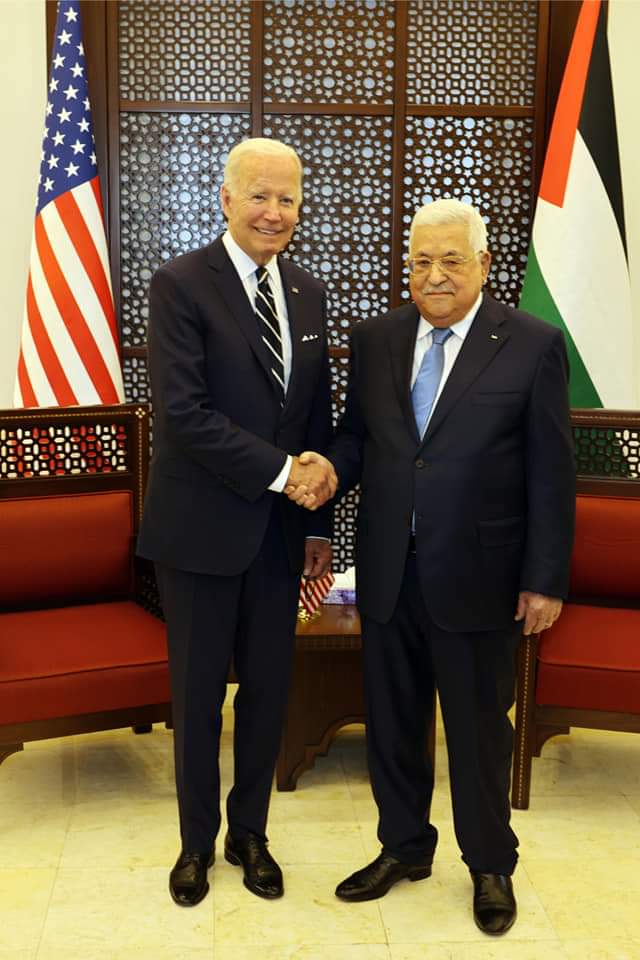 في زيارة استغرقت ساعتين من الوقت إلى بيت لحم في الضفة الغربية لنهر الأردن، اليوم الجمعة 15/07/2022، إلتقى الرئيس الأميركي جو بايدن رئيس السلطة الفلسطينية محمود عباس قادماً من مدينة القدس المحتلة.