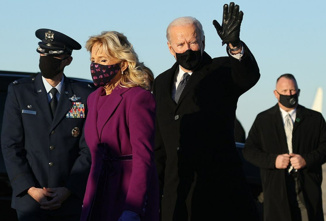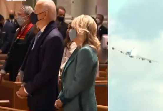 أقلعت الطائرة الرئاسية وعلى متنها الرئيس الأميركي دونالد ترمب وأسرته مغادرين البيت في واشنطن وبدأ الرئيس الأميركي المنتخب جو بايدن يومه، قبيل تنصيبه رئيساً للولايات المتحدة الأميركية والسيناتور كمالا هاريس نائباً له، بالصلاة مع عدد من أعضاء الكونغرس في كنيسة القديس ماثيو بينما أعلن البنتاغون اختصار العرض العسكري الخاص بمغادرة ترمب البيت الأبيض.