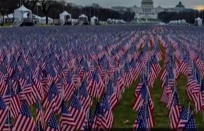 مئتا ألف علم يمثلون الحشود في منتزه “ناشونال مول” بواشنطن في حفل تنصيب بايدن