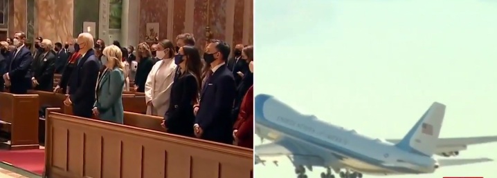 وكان بايدن استهلّ فعاليات تنصيبه بحضوره مع نواب من الكونغرس قدّاساً في كنيسة سانت ماثيو بواشنطن، وذلك مباشرة بعيد مغادرة الرئيس المنتهية ولايته دونالد ترامب البيت الأبيض نحو مقر إقامته في فلوريدا.