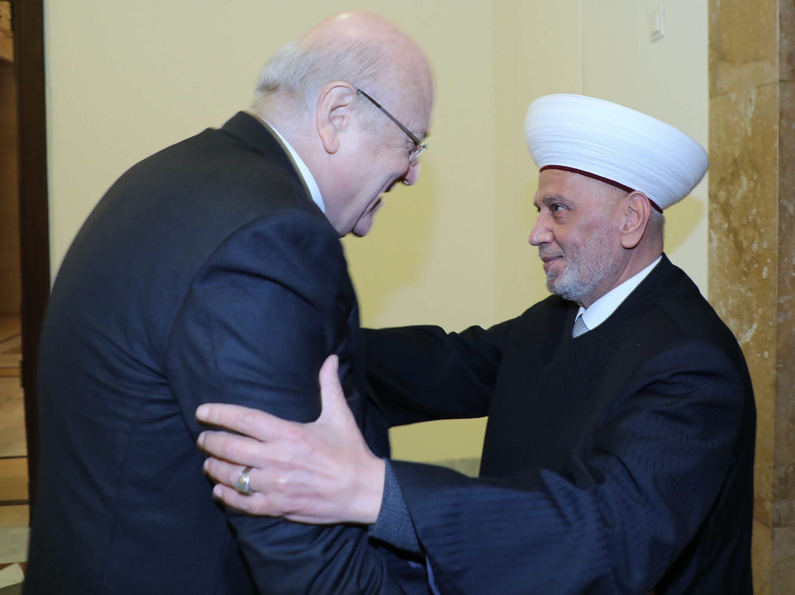 دريان زار، قبل الصلاة، السراي الكبير حيث استعرض ثلة من قوى الأمن الداخلي ثم رحب به ميقاتي مصافحاً اياه بحرارة وأعقبت ذلك خلوة، قال من بعدها دريان: “دار الفتوى حاضنة لجميع اللبنانيين وتشكل رمز الاعتدال والانفتاح على المكونات اللبنانية كافة.