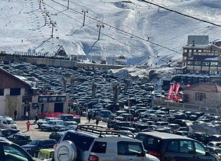 وأرفق التغريدة بصورة تظهر زحمة السيارات في إحدى مناطق التزلج
