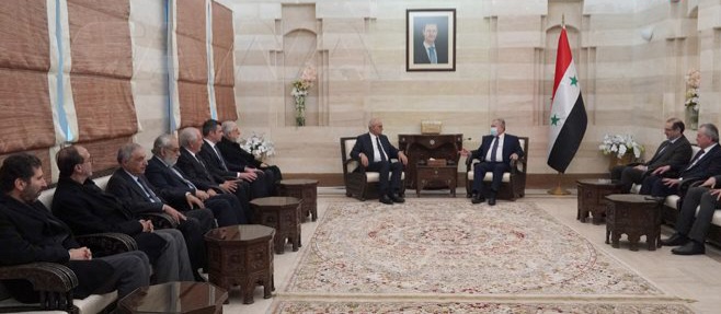 وسبق هذا اللقاء استقبال رئيس مجلس الوزراء السوري حسين عرنوس ووزير الخارجية والمغتربين فيصل المقداد للوفد.