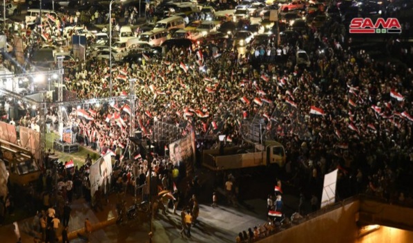 ما أن أعلنت نتائج الانتخابات الرئاسية السورية وفوز المرشح بشار حافظ الأسد برئاسة الجمهورية العربية السورية، بعد نيله نسبة ٩٥،١ ٪ من الأصوات، حتى عمت الاحتفالات دمشق وسائر المحافظات رقصاً ومسيرات تحت الراية المنصورة العلم والصورة وشهدت الحدود اللبنانية – السورية إطلاق نار كثيف ابتهاجا.