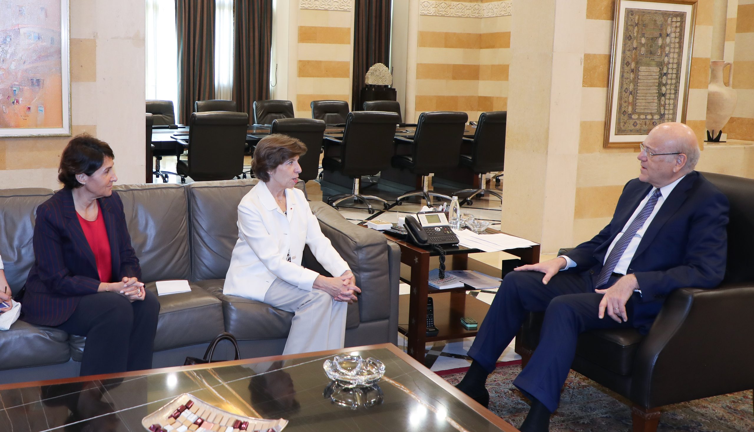 رئيس حكومة تصريف الاعمال نجيب ميقاتي مستبقلاً وزير الخارجية الفرنسية السيدة كاترين كولونا