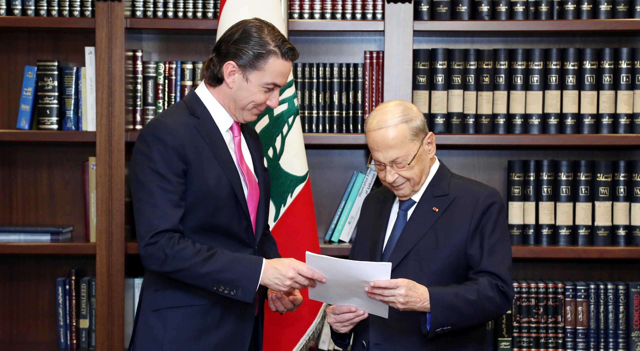 ومن فوره عاد الوفد اللبناني الذي ضم مدير عام رئاسة الجمهورية انطوان شقير والعميد الركن منير شحادة، مفوض الحكومة لدى القوات الدولية ووسام شباط عضو هيئة ادارة النفط واحمد عرفة رئيس مركز الاستشارات القانونية في وزارة الخارجية الى بعبدا حيث تم تسليم الرئيس عون رسالة الاتفاق.
