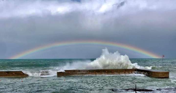 عدسته والسماء عشق وخيال سارح مرسمه فضاء اليَمّ ولوحته تجسدت “قوس قزح” يعانق موج البحر ويشدو للغيم لحن أجمل الألوان.